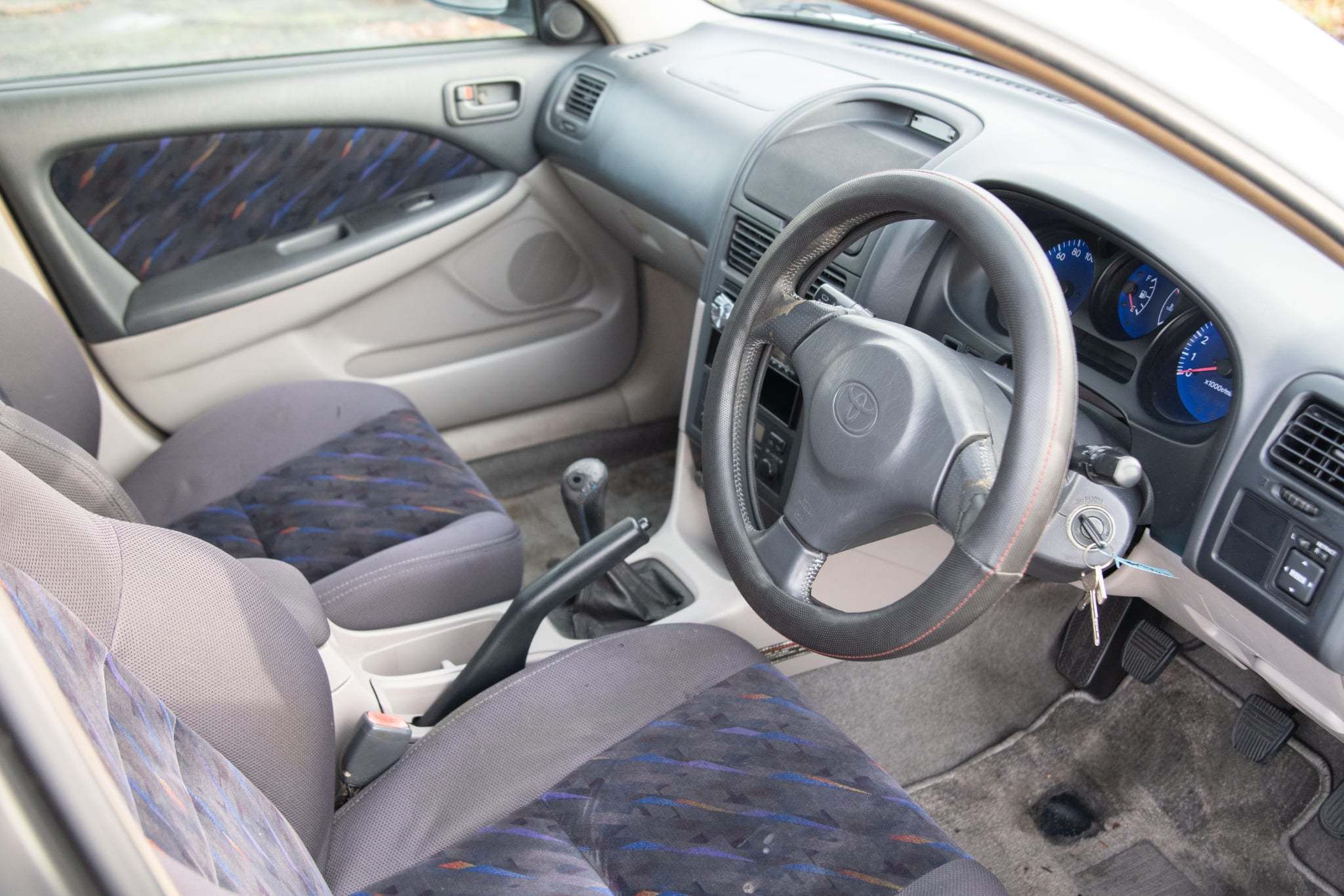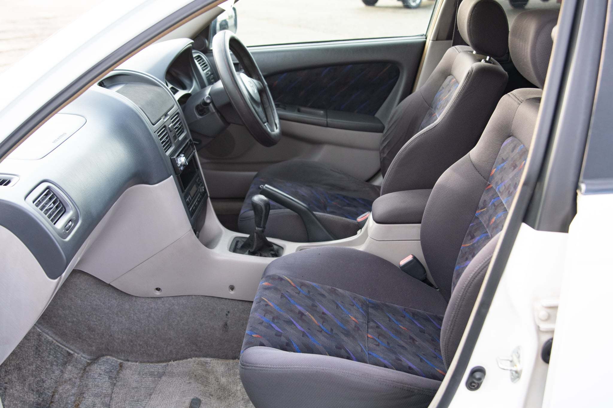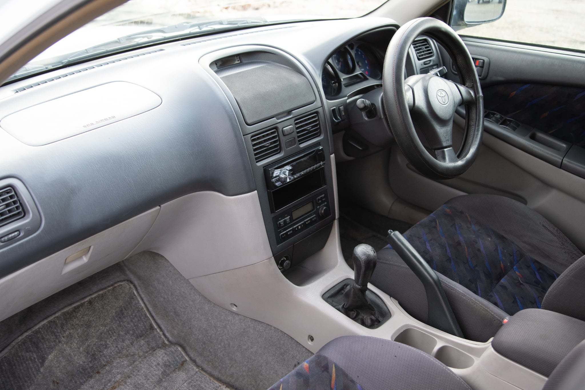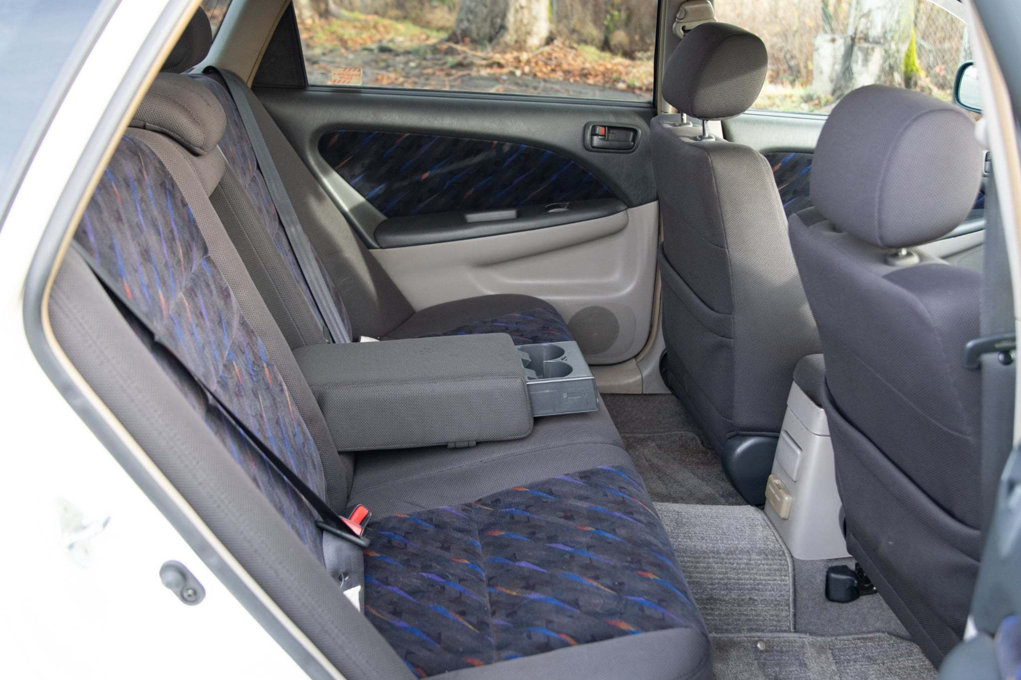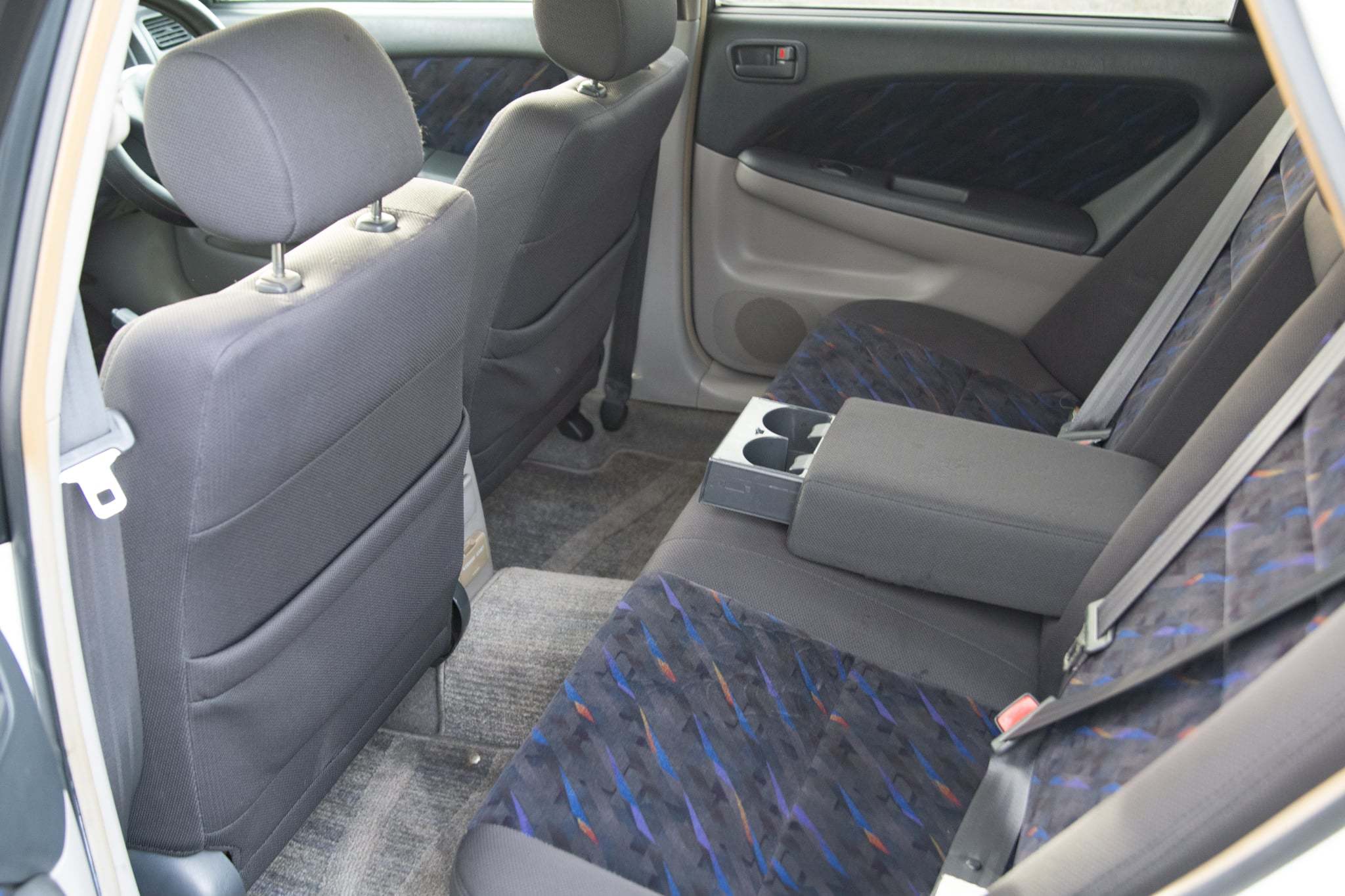 Peek inside Toyota's most spacious performance vehicle and the Caldina offers much more than just a cavernous cabin. The interior is chock full of premium materials and enough power amenities to make daily driving a walk in the park. The seats are upholstered in a charcoal cloth, with attractive multicolored accents. Unapologetically 90's, the seating surfaces have withstood the past couple of decades on the road without succumbing to any major damage outside of a rough driver's seat bolster. On the positive side of things, the matching door card inserts are in good nick. Redesigned in compliance with Toyota's next-generation design language, the black vinyl dash is tucked away nicely at the front of the cabin and houses dual SRS airbags for any safety conscious pilots or passengers. The center stack frames digital automatic climate control, and OEM audio. Trudging forward into the winter, the HVAC has hot heat on tap, and ice cold A/C for summers ahead. A aftermarket navi screen serves as a bit of a party trick and the sound quality from the headunit is above average overall.