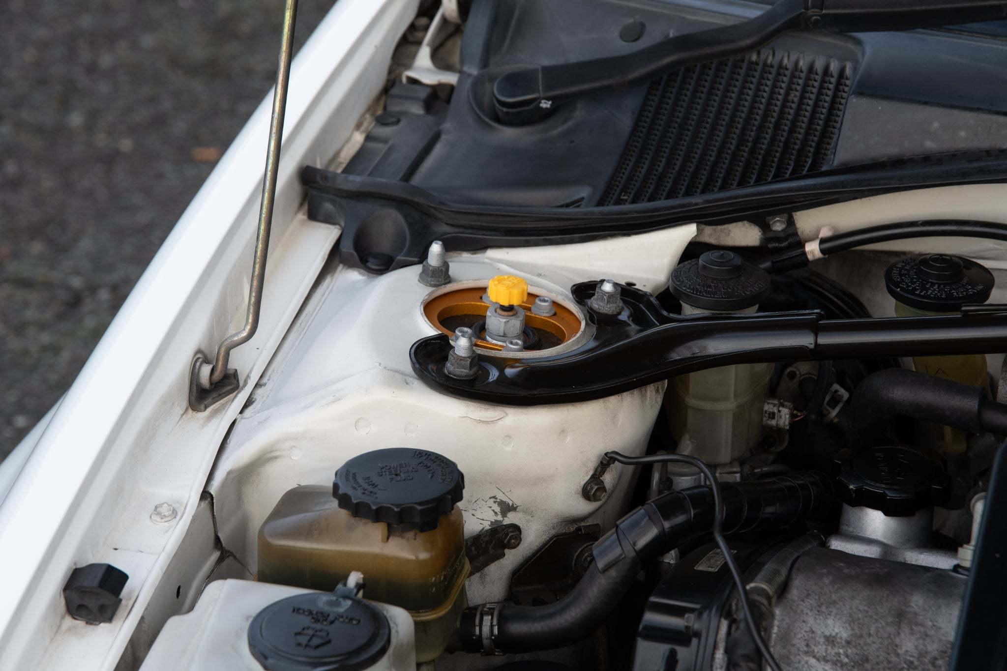 For additional comfort behind the wheel, the driver can tilt adjust the steering column. All four power windows work as advertised, as do the power locks and power moonroof. Even the mirrors electronically fold to keep your paintwork safe in tight parking situations. The rear bench seats three additional passengers with ease and also reclines slightly if you need to pull over and catch some shuteye. Additionally, the cargo area has tons of space, and the rear bench folds fully flat for any impromptu Home Depot runs. There's a whole lot to love about this Caldina's cockpit and not much to scrutinize. Even the OEM carpet mats are still in great shape and look awesome against the period-correct upholstery! Under the skin, this Caldina is a rally legend in sheep's clothing and is backed by Toyota's stout generation 4 3S-GTE. A notoriously reliable mill with a penchant for performance, this 3S is fresh off a huge comprehensive service by our trained technicians and cranks over with ease.