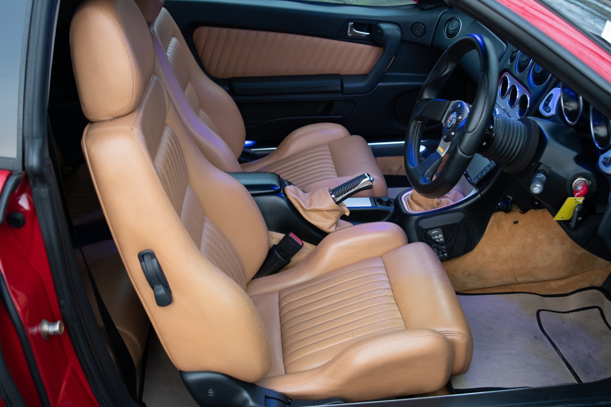 This 1999 Alfa Romeo GTV is powered by the legendary 3.0L Busso V6 paired with a six-speed manual transmission and is finished in red over a tan leather interior.