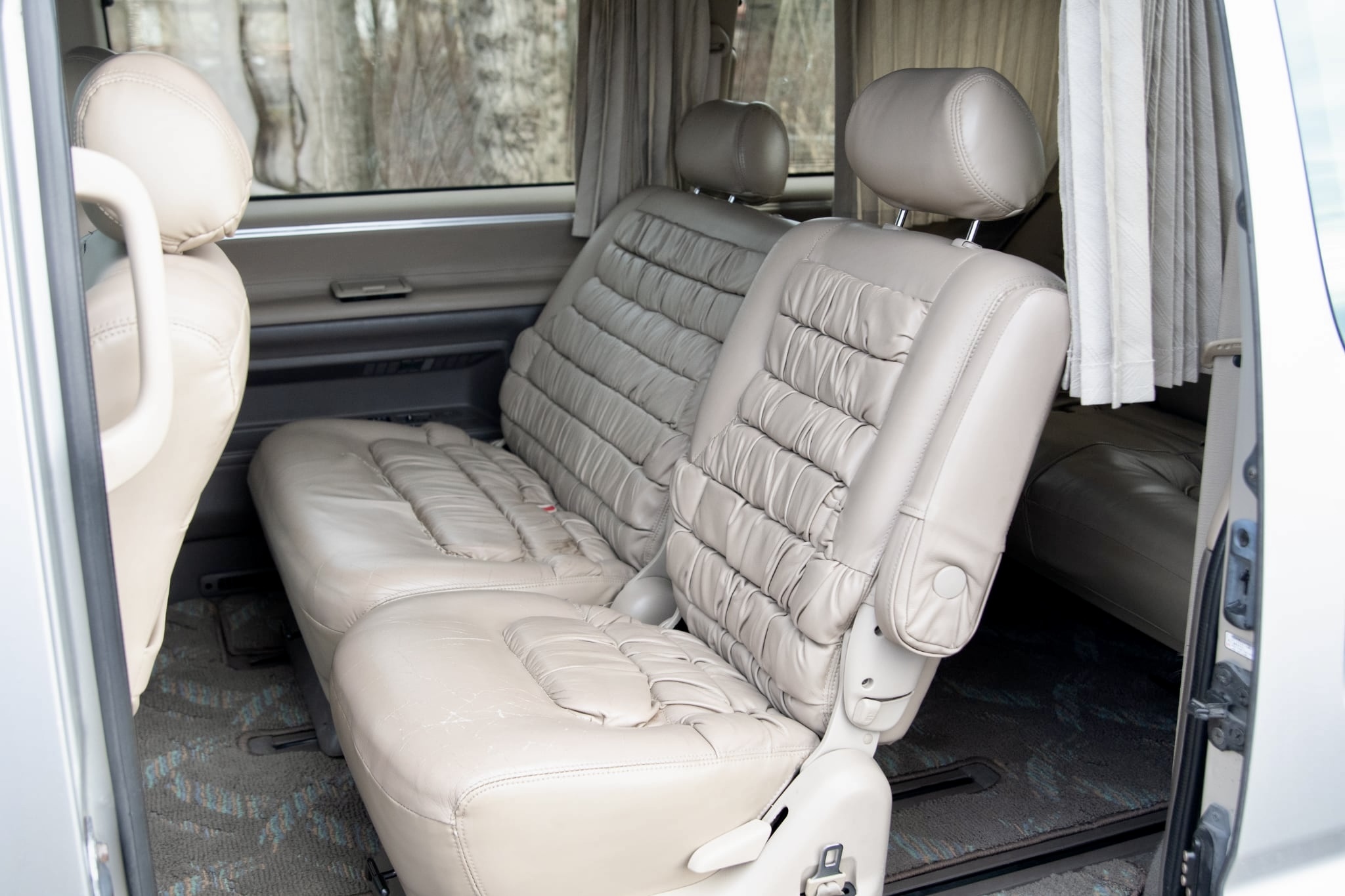 Now offering this ultra luxurious van to a lucky new owner. This Granvia is packed with creature comforts. Features include but are not limited to: Plush leather interior, woodgrain accents throughout the entire cabin, mirrored ceiling with woodgrain accents, curtains, upgraded wheels & much more. This van is the perfect JDM highway cruiser. Power is supplied by a V6 gasoline engine, paired with a smooth shifting automatic transmission. Since new it has covered 78,613 KM or only 48,847 original miles.