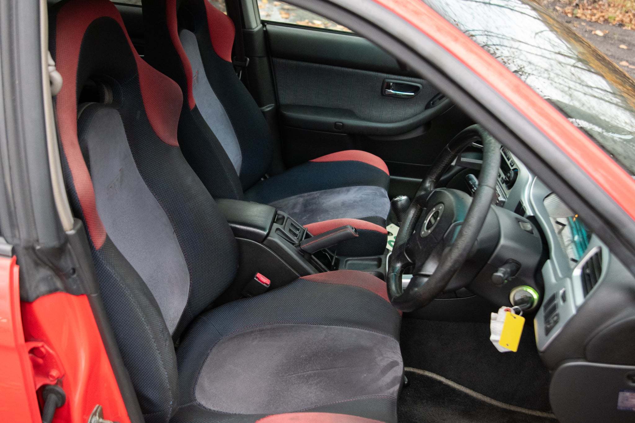 · The car is finished in Premium Red (01W), over a black cloth-trimmed interior.